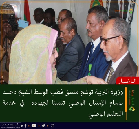 وشحت وزيرة التربية وإصلاح النظام التعليمي السيدة هدى باباه صباح اليوم الخميس باسم فخامة رئيس الجمهورية السيد محمد ولد الشيخ الغزواني، كوكبة من موظفي وأطر الو