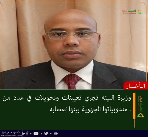 أجرت وزيرة البيئة والتنمية المستدامة مسعودة بحام لقظف تعيينات جديدة وتحويلات في عدد من المندوبيات الجهوية لقطاعها شملت ولايات لعصابه ، وانشيري ،وكيدماغه، وتك