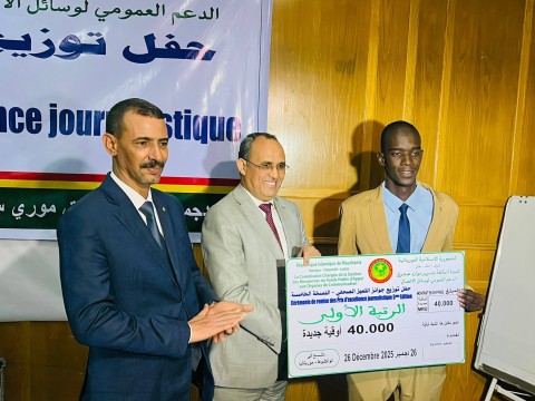 أشرف وزير الثقافة والفنون والاتصال والعلاقات مع البرلمان، الناطق باسم الحكومة، السيد الحسين ولد مدو، اليوم الجمعة في نواكشوط، على حفل توزيع جوائز مسابقة التم