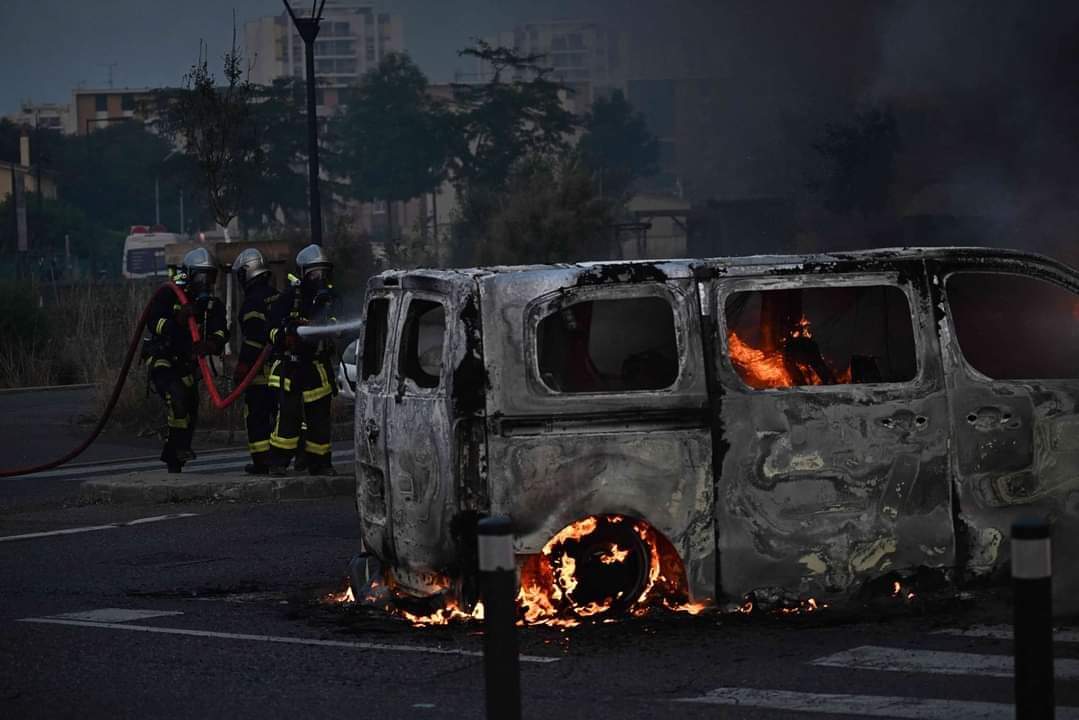 وقد اندلعت أعمال شغب لليلة الثانية على التوالي في فرنسا ردا على مقتل الشاب عند نقطة تفتيش مرورية، في وقت تم فيه نشر الآلاف من رجال الأمن لمنع توسع الاحتجاجات العنيفة.
