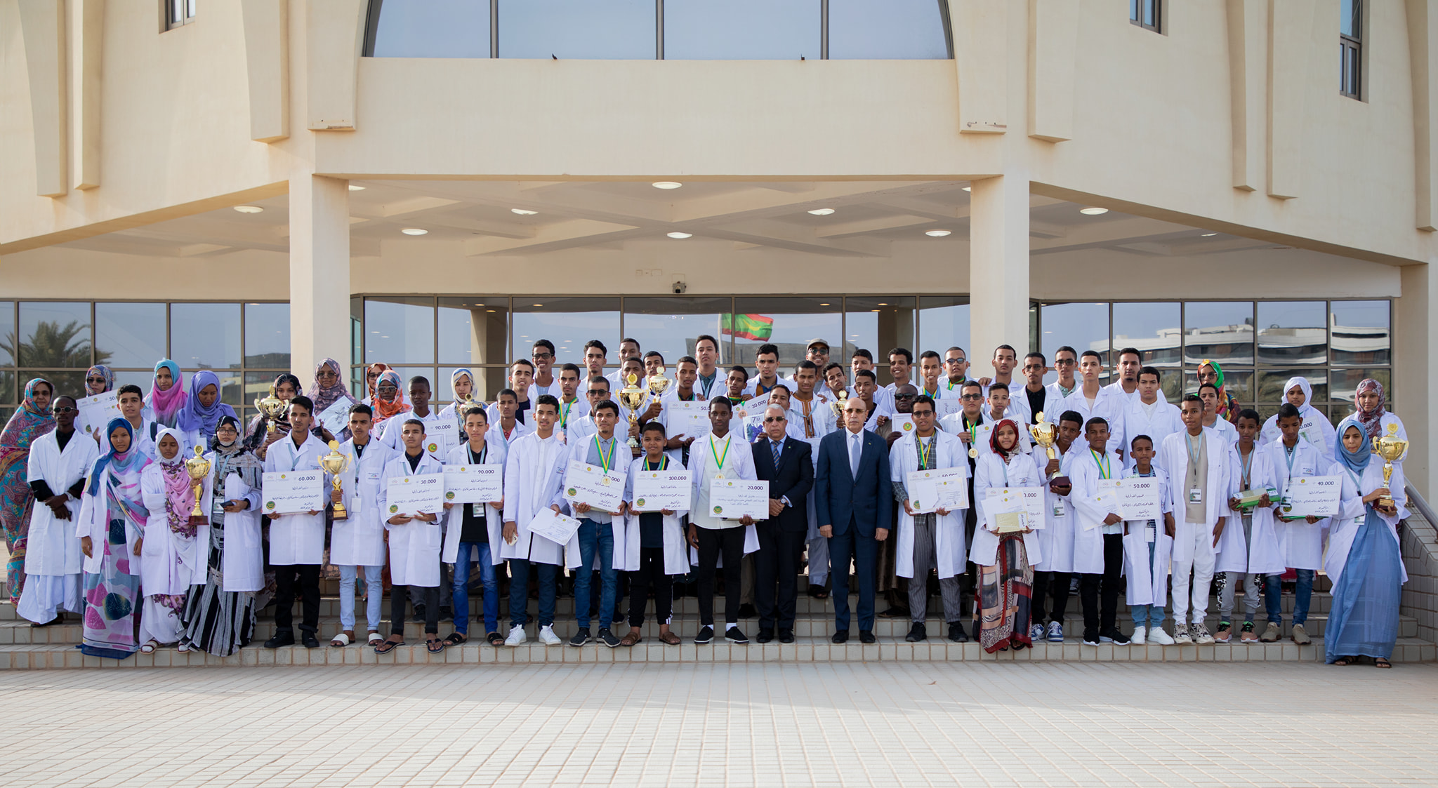 وقد سلم فخامة رئيس الجمهورية الجائزة الأولى للسنة الثالثة إعدادية في رالي العلوم لفريق نواكشوط الشمالية، وتسلمها نيابة عن الفريق التلميذ يعقوب عبد الله بوبكر سيسى..والجائزة الأولى الخاصة بالخوامس الثانوية لفريق أتزارزه، وتسلمها نيابة عن الفريق التلميذ، الشيخ النحوي محمد ميلود، والجائزة الأولى للسنوات السوادس لفريق انواكشوط الجنوبية وتسلمها نيابة عنهم التلميذ، محمد الحسن زيدان