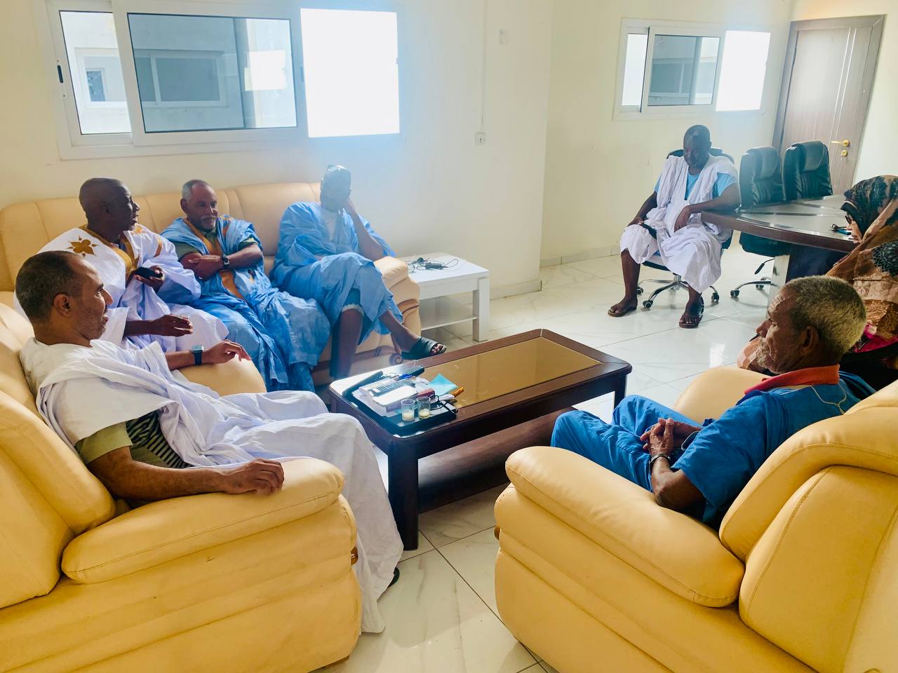 ادى صباح اليوم الخميس 24 أغشت 2023 مجموعة من المديرين لمؤسسات التعليم الثانوي زيارة لرئيس جهة لعصابه المهندس محمد محمود ولد الحبيب في مكتبه، حيث عبروا له عن شكرهم وامتنانهم لما قدمه من تدخلات لصالح مؤسسات التعليم الثانوي، من ترميم للمؤسسات،وتزويد بعضها بالمياه، والمقاعد الدراسية، وبناء مقر إدارة وتأثيثه،اضافة الى توفير منح لبعض التلاميذ المتفوقين، مؤكدين على أن مثل هذه التدخلات ستساعد في النهوض بالقطاع وحلحلة مشاكله.