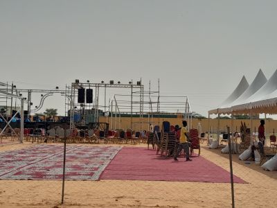 اكتملت بمدينة لعيون التحضيرات اللوجستية لانطلاق النسخة الثانية من مهرجان لعيون لتنمية الثقافة والتراث، وأفاد موفد لمسيله ميديا بوصول معظم المدعوين من خارج لعيون، بينما ينتظر وصول البقية خلال الساعات القليلة المقبلة، وتسابق الفرق الفنية الزمن لوضع اللمسات الأخيرة على المنصة الرسمية، وسط حرص على العناية بأدق التفاصيل.