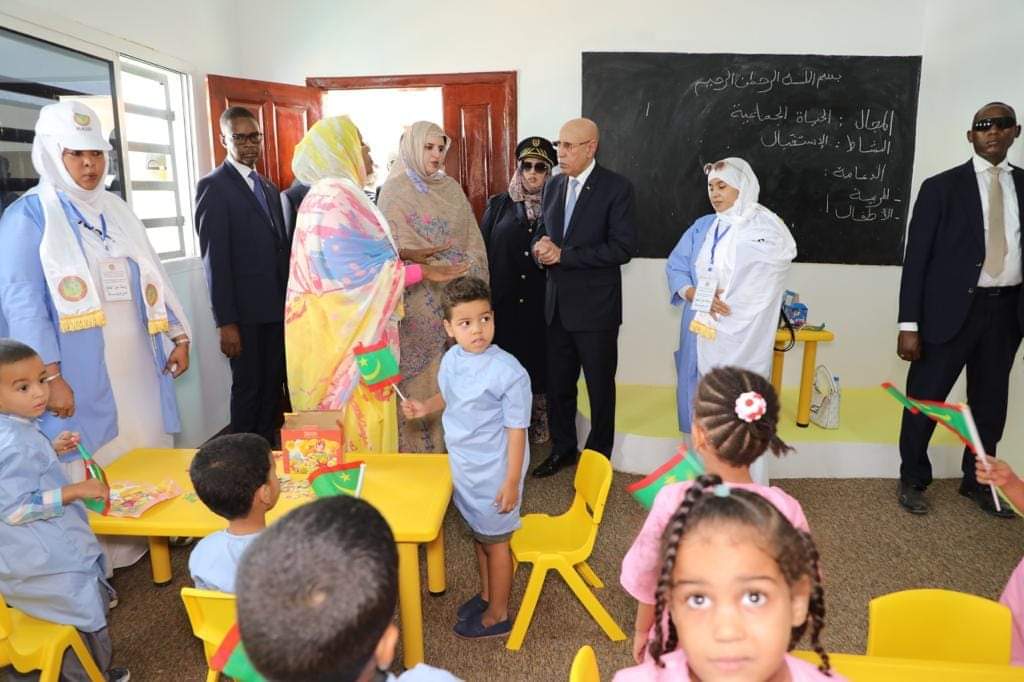 كما زار فخامة رئيس الجمهورية، الروضة النموذجية في عين الطلح، حيث استقبل من طرف معالي الوزيرة السيدة صفية انتهاه، واستمع إلى نشيد ترحيبي من أطفال الروضة، وتجول في مختلف أقسامها، وتابع فخامته شروحا من طرف المديرة الجهوية لانواكشوط الشمالية سابقا ، السيدة صفية هاشم، حول آليات التربية والتدريس في كافة أقسام الروضة.