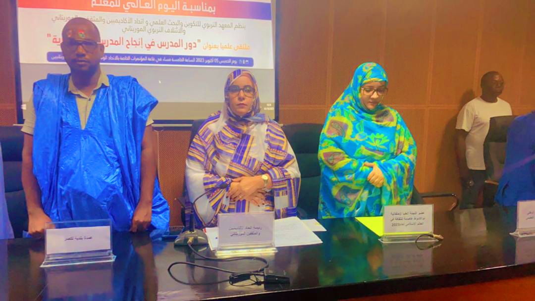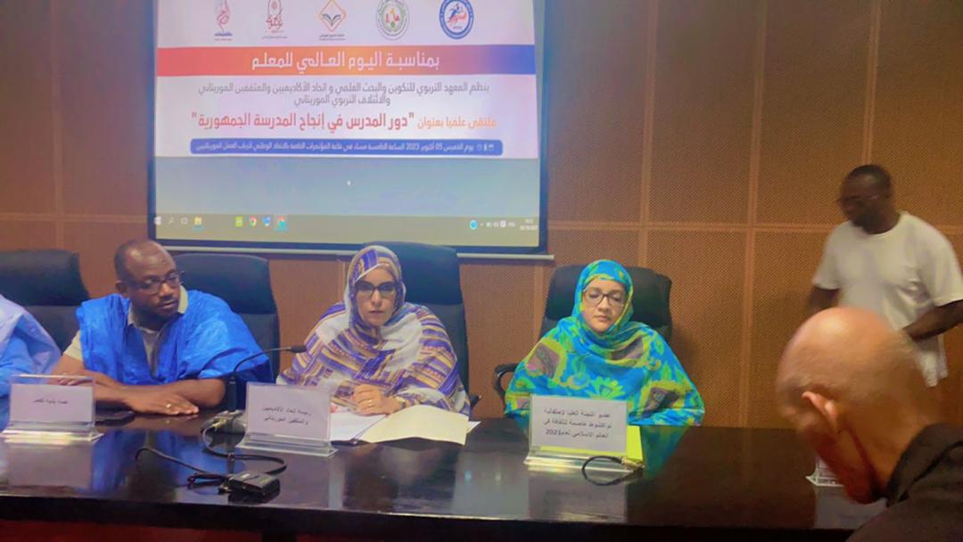 بمناسبة اليوم العالمي للمعلم نظم اتحاد الاكادميين والمثقفين الموريتانى والمعهد التربوى للتكوين والبحث العلمى، والائتلاف التربوى، مساء أمس ندوة علمية هامة تحت شعار: "دور المدرس في إنجاح المدرسة الجمهورية"