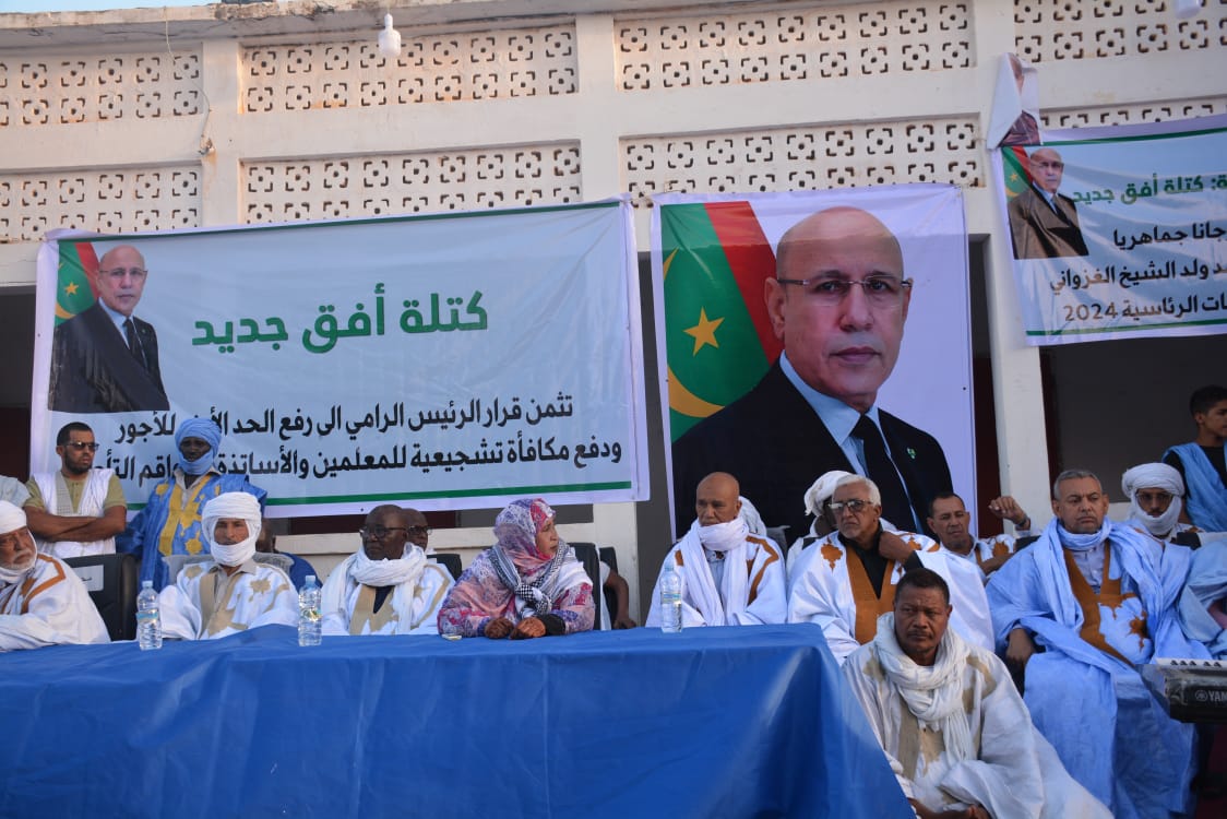 و أكدت رئيسة كتلة أفق جديد دعوتها باسم الكتلة و االحلف إلى ترشيح الرئيس محمد ولد الشيخ الغزواني لمأمورية جديدة حتى يكتمل عطاؤه.