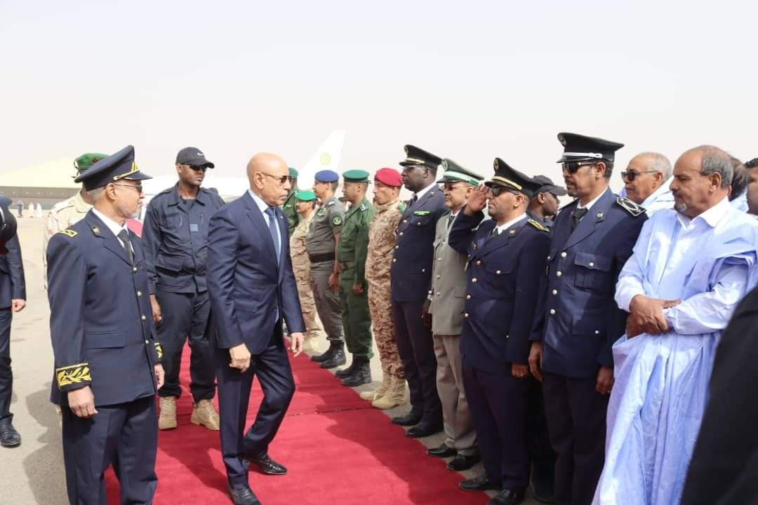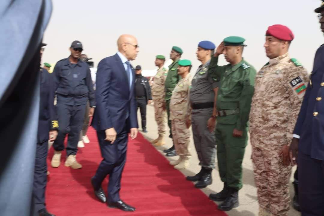 واستعرض فخامة رئيس الجمهورية وحدات من القوات المسلحة أدت له تحية الشرف، وذلك قبل أن يصافح سيادته أطر ووجهاء هذه الولاية.