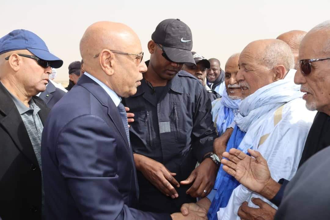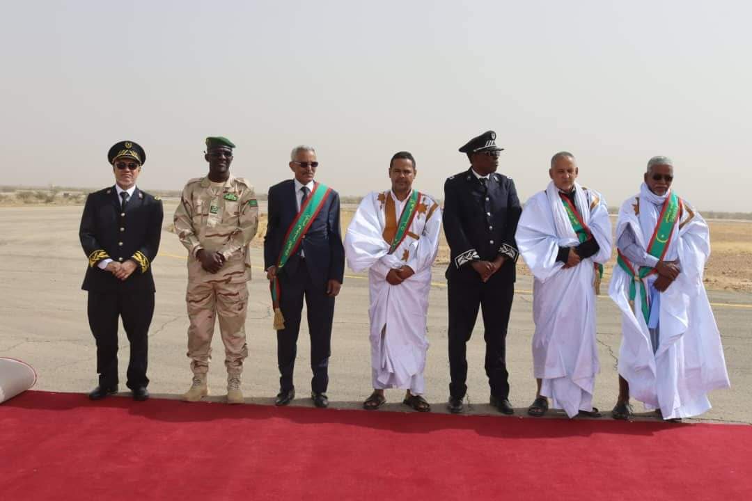 وكان في استقبال رئيس الجمهورية، لدى نزوله من سلم الطائرة، والي آدرار السيد عبد الله ولد محمد محمود، وقائد المنطقة العسكرية الثالثة العقيد محمد الأمين محمد بلال، ورئيس المجلس الجهوي لجهة آدرار السيد محمد ولد اشريف ولد عبد الله، وعمدة بلدية أطار السيد ابراهيم ولد محمد ولد أبدبه، وحاكم مقاطعة أطار السيد الشيخ سعيد باكيلي، ونواب المقاطعة.