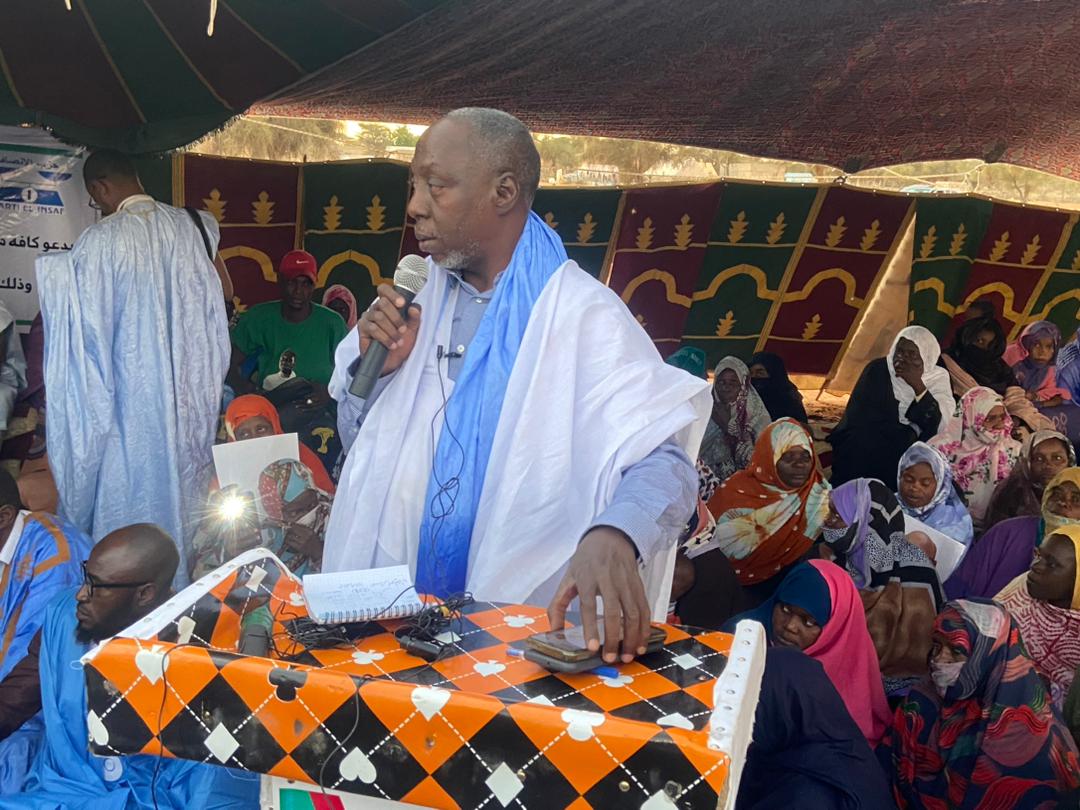 الوزير شكر جماهير تيار الإنصاف التي حضرت المهرجان على مبادرتهم للمطالبة بالمامورية الثانية للرئيس محمد ولد الشيخ الغزواني، وحثهم على المسارعة بالتسجيل في السجل السكاني بعد تمديد فترته بغية الحصول على الأوراق الثبوتية والتمكن من التصويت لصالح الرئيس في الانتخابات الرئاسية 2024.