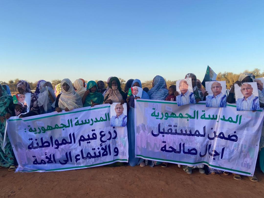 جماهير تيار دعم الإنصاف وتعزيز مكانة الدولة الوطنية برئاسة المناضلة زينب منت سيديني في واد الروظة خصصت استقبالا حارا للوزير ولد بناهي للتعبير عن تمسكها بالرئيس محمد ولد الشيخ الغزواني والمطالبة بترشحه لمامورية جديدة.
