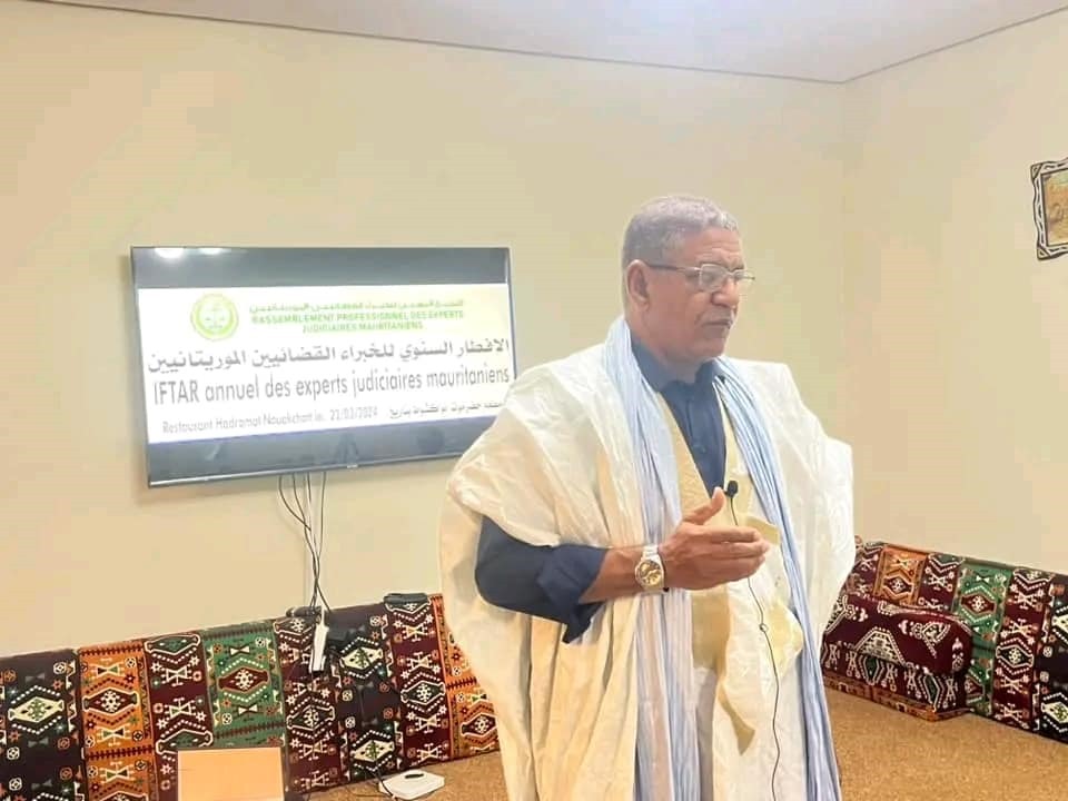 نظم التجمع المهني للخبراء القضائيين الموريتانيين إفطارهم السنوي للعام 2024، وحضر الإفطار الأمين العام لاتحاد عمال موريتانيا الوزير السابق الكوري ولد عبد المولى ونقيب الصحفيين الموريتانيين وأعضاء المكتب التنفيذي وعدد من الخبراء القضائيين الموريتانيين من ضمنهم العميد إبراهيم ولد الزبير والعميد إبراهيما سيديكى وكذلك العميد محمد ولد التومي.