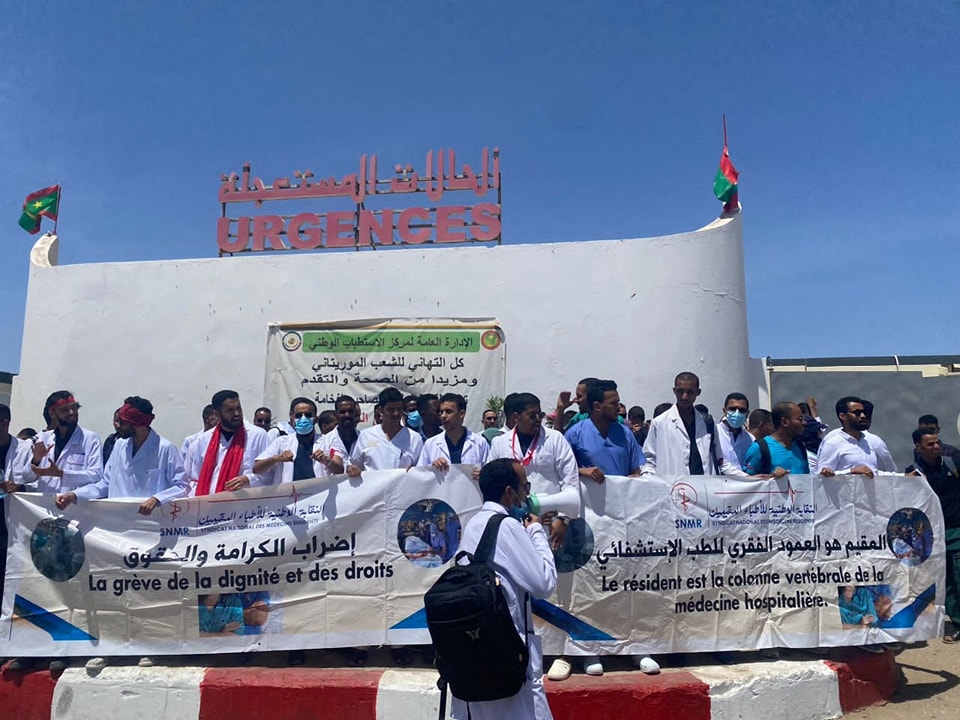 أضرب الأطباء المقيمون اليوم الاثنين إضرابا عن العمل لمدة أربع ساعات، للمطالبة بتطبيق اتفاق كان قد تم توقيعه بينهم ووزارة الصحة، ونظموا الأطباء المضربون وقفة احتجاجية أمم المستشفى الوطني بنواكشوط للضغط على وزارة الصحة لتطبيق الاتفاق.