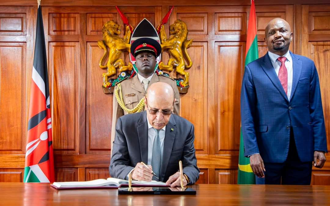 وقد استقبل فخامة رئيس الجمهورية رئيس الاتحاد الإفريقي لدى وصوله نيروبي من قبل السيد موسيز كوريا، معالي وزير الوظيفة العمومية تطوير الإدارة في الحكومة الكينية، وسعادة السيدة خديجة أمبارك فال، سفيرة بلادنا المعتمدة في كينيا.