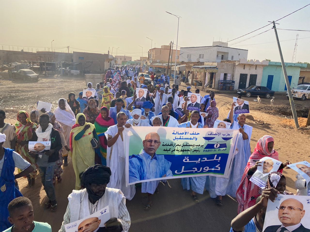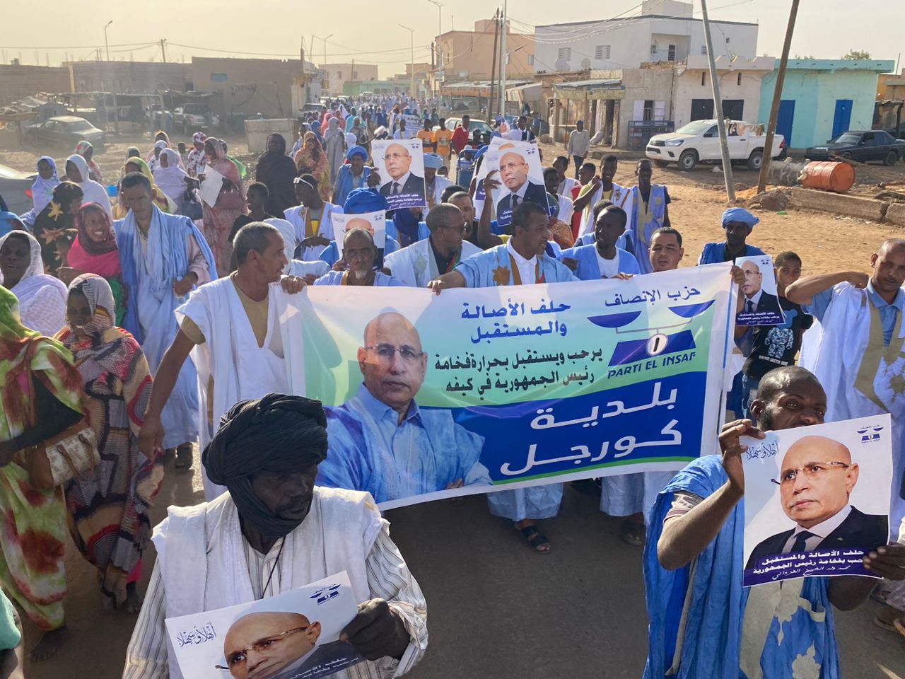 جماهير حزب الانصاف في بلدية كورجل رفعت الشعارات المرحبة بزيارة الرئيس محمد ولد الشيخ الغزواني والمطالبة بإنتخابه لمأمورية ثانية من أجل استمرار نسيرة البناء والتنمية,