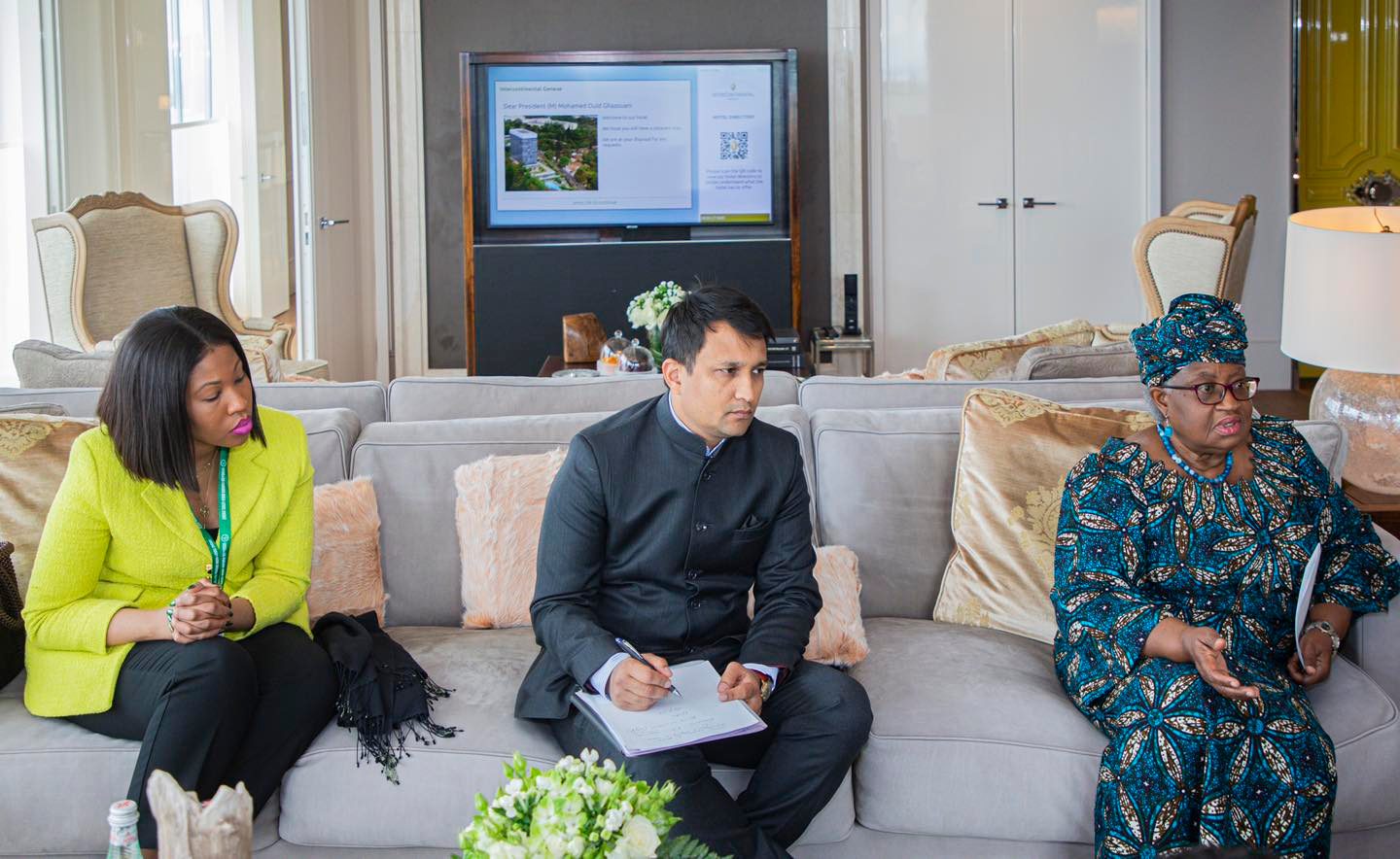 التقى فخامة رئيس الجمهورية، رئيس الاتحاد الإفريقي السيد محمد ولد الشيخ الغزواني، ظهر اليوم الإثنين بمقر إقامته في جنيف، على هامش الدورة ال 77 للجمعية العامة لمنظمة الصحة العالمية، بالمديرة العامة لمنظمة التجارة العالمية السيدة نجوزي أوكونجو إيويالا.