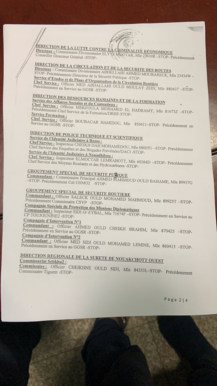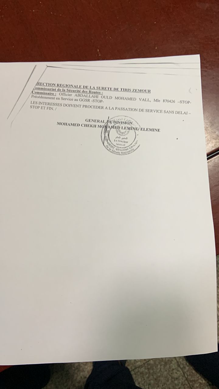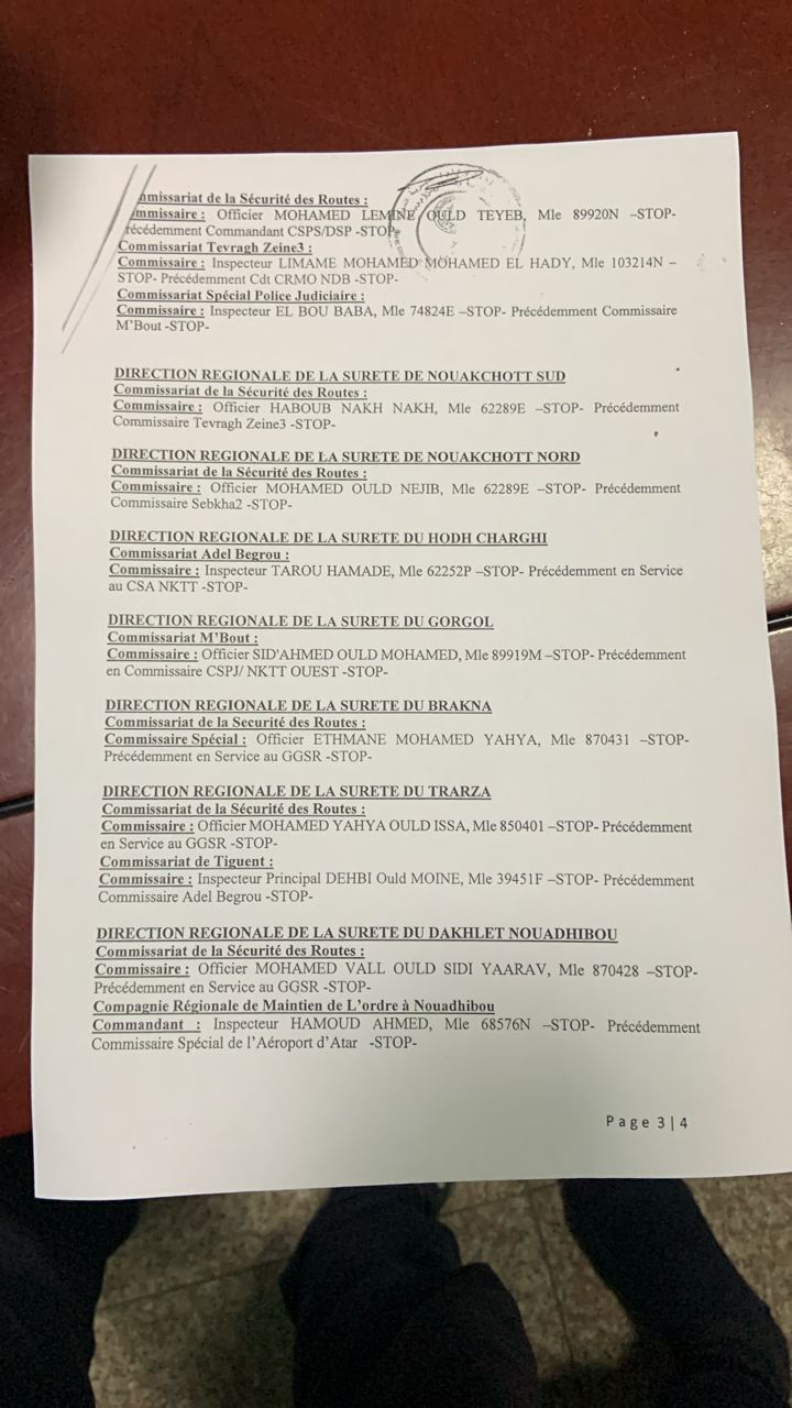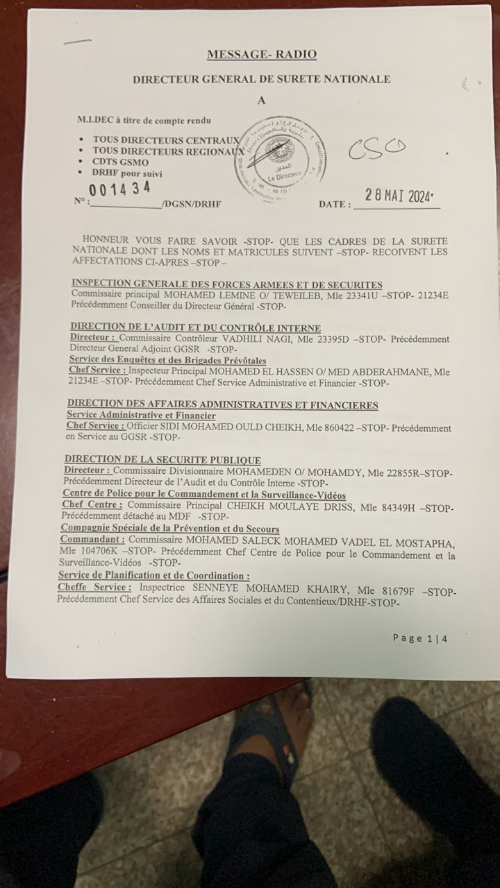 في مذكرة جديدة صدرت يوم 26 مايو الجاري أجرى المدير العام للأمن الوطني محمد الشيخ ولد محمد الأمين الملقب ( أبرور) تعيينات واسعة على مستوى ضباط الشرطة.