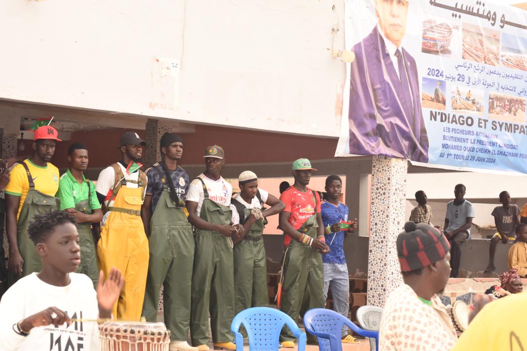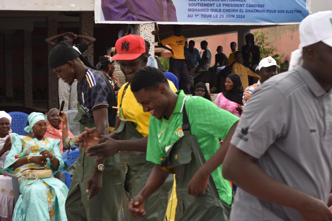 نظم الصياديون التقليديون المنحدرون من منطقة انجاكو امس السبت بمقاطعة السبخة تظاهرة سياسية حاشدة لدعم ترشح الرئيس محمد ولد الشيخ الغزواني حضرتها جماهير غفيرة من فئة الصيادين والنساء بائعات الأسماك