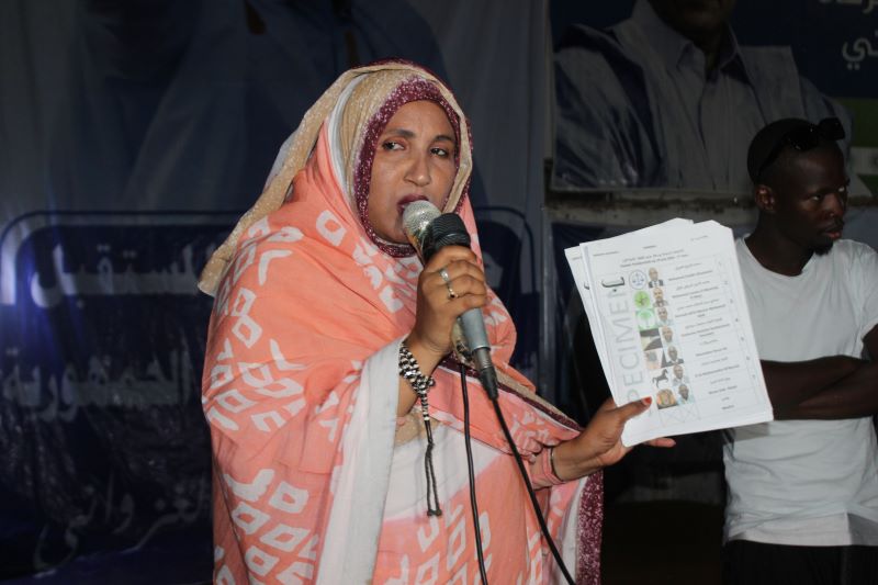 كما حضرت المنسقتان الجهوية والمقاطعية سهرة انتخابية لأحد مقرات حلف الأصالة والمستقبل دعتا فيه إلى مباشرة التعبئة والتحسيس وتنويع اساليب الدعاية وشرح طريقة التصويت لصالح المرشح محمد ولد الشيخ الغزواني.