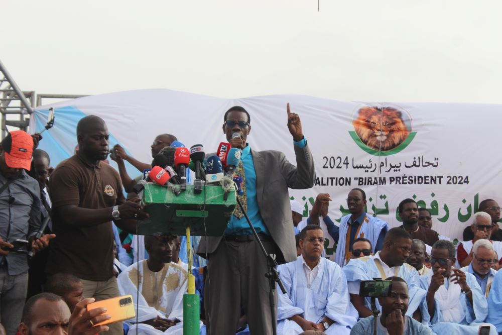 وقال: بيرام الداه اعبيد في مهرجان شعبي حاشد نظمه الائتلاف الداعم له مساء امس الأحد في ساحة المطار إنه لا يعترف بشرعية الرئيس غزواني ولا بالنتائج التي أعلنت عنها اللجنة المستقلة وأقرها المجلس الدستوري.