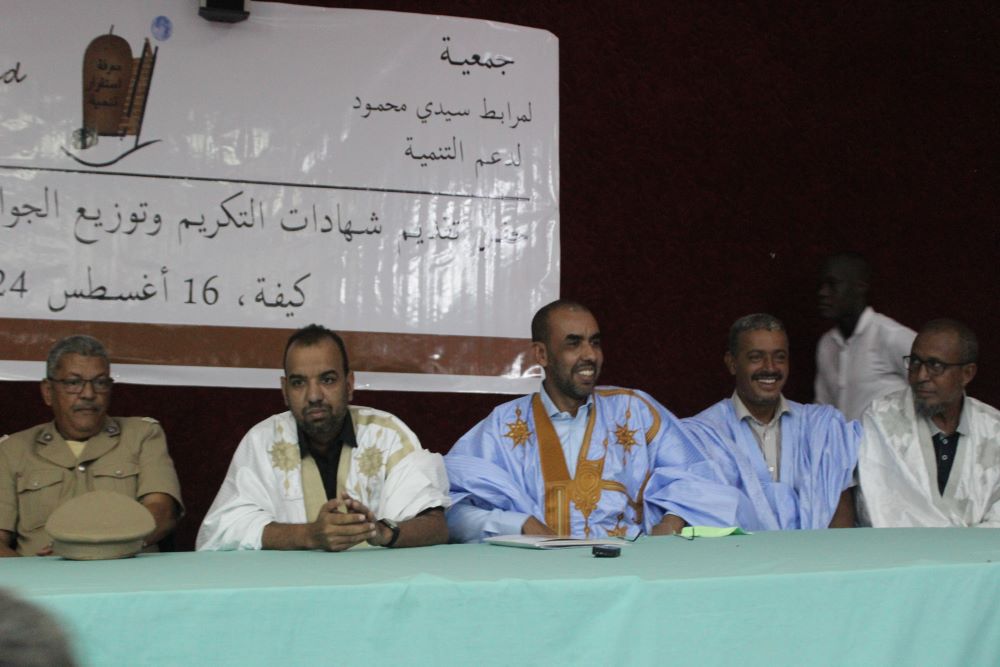 مدير ديوان والي لعصابه أحمد بزيد ولد أحمد يعقوب عبر عن سعادته بوجوده ضمن هذا الحفل الذي ينظم باسم العالم والولي الصالح لمرابط سيد محمود شاكرا كل الذين ساهموا في هذا الحفل البهيج متمينا ان تحذوا المنظمات الأهلية حذو هذه الجمعية.
