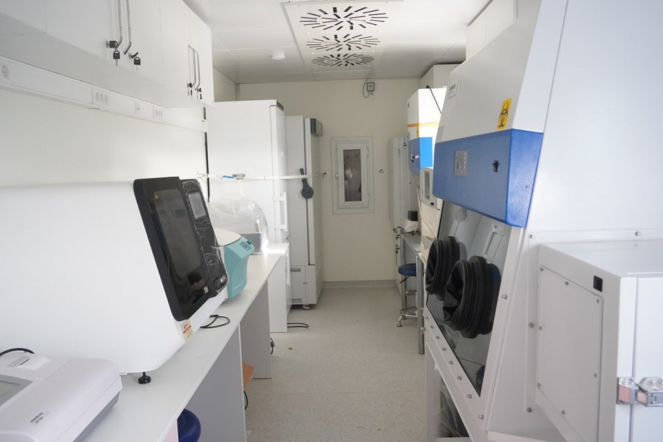 يتوفر المختبر البيولوجي المتنقل على تجهيزات مخبرية حديثة، وكادر بشري مؤهل، وأنظمة للسلامة ضد العدوى.