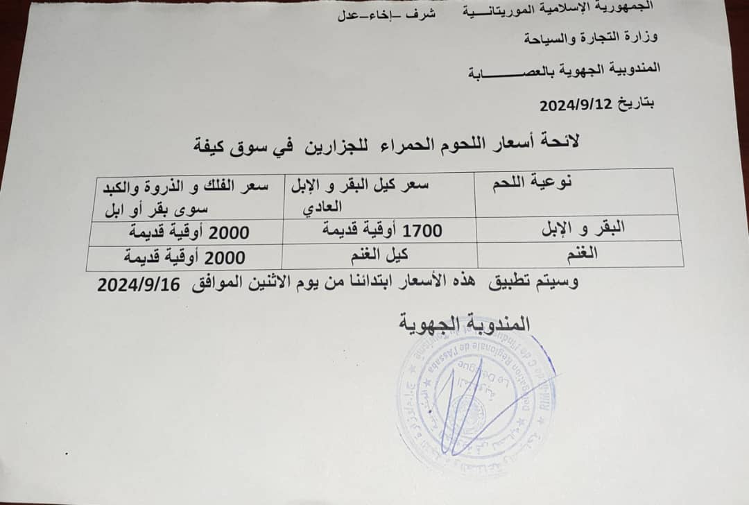علمت لمسيله ميديا بأن اتفاقا بين اتحادية الجزارين والسلطات الإدارية والبلدية حول تسعيرة موحدة لبيع اللحوم في مدينة كيفه تم التوقيع عليه أمس الأربعاء وسيدخل حيز التطبيق خلال الأيام المقبلة.