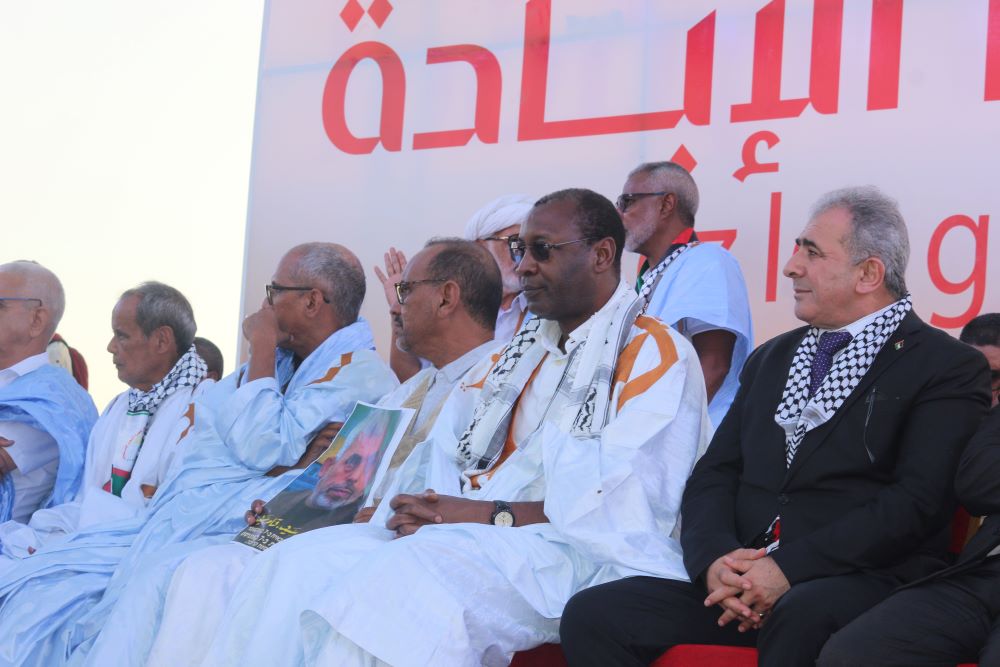 ممثل السلطة الفلسطينية عبر في كلمته عن شكره للأحزاب السياسية والقوى الوطنية الحية في موريتانيا والشعب الموريتاني بقيادة الرئيس محمد ولد الشيخ الغزواني على موقفها الثابت لنصرة الشعب الفلسطيني، ووجه تحية اجلال واكبار إلى أبناء الشعب الفلسطيني الذي يواجهون بصمود منقطع النظير عدوانا وبطشا مستمرا منذ سنة كاملة، متمنيا للجرحى الشفاء العاجل، ومذكرا بنضالات القامات الفلسطينية واللبنانية التي سقطت على درب الحرية والاستقلال من أجل إقامة دولة فلسطينية عاصمتها القدس.