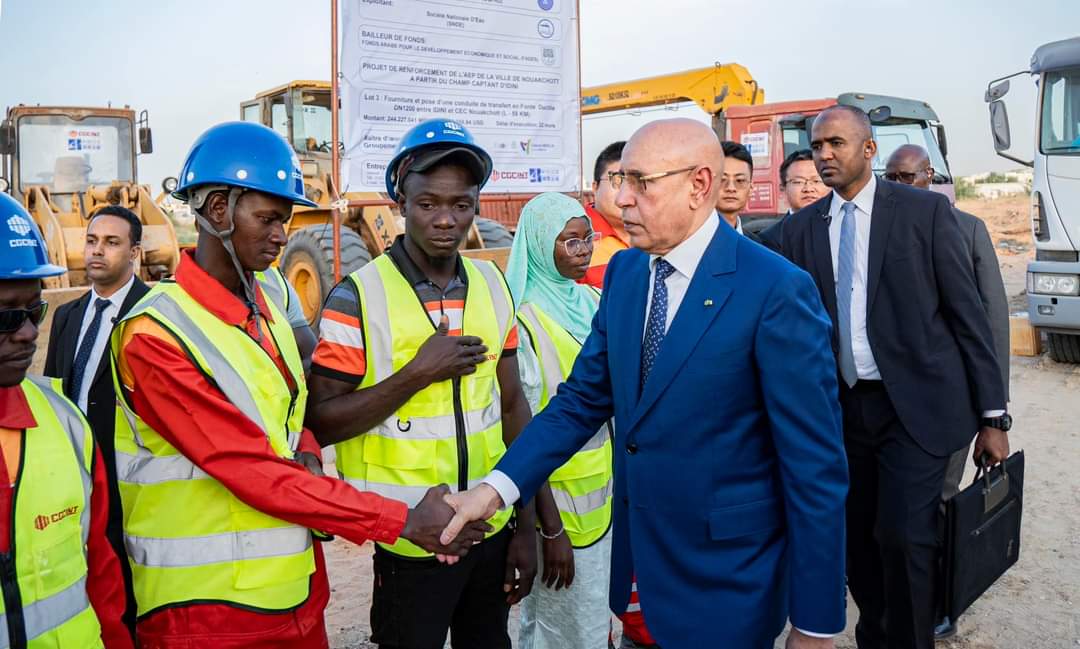 أشرف فخامة رئيس الجمهورية، السيد محمد ولد الشيخ الغزواني، مساء اليوم الأربعاء، على وضع حجر الأساس لمشروع تقوية تأمين تزويد مدينة نواكشوط بالماء الصالح للشرب انطلاقا من حقل آبار إديني.