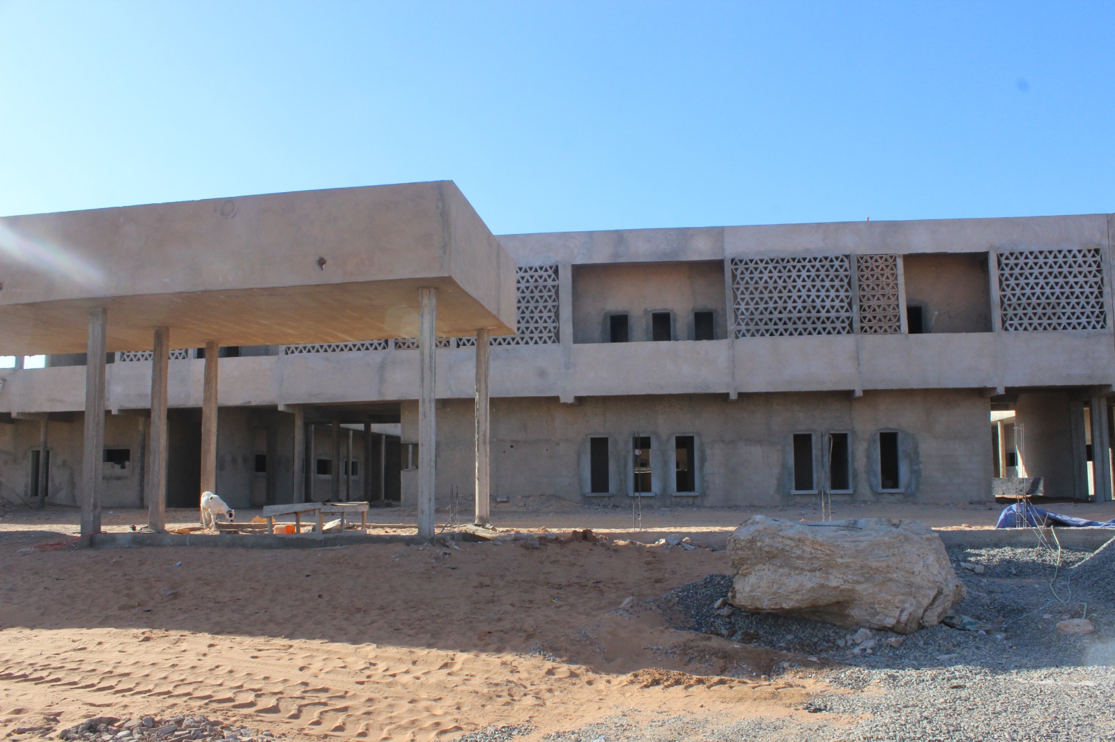 ومع ان لا توجد لافتة تعريفية توضح تاريخ تدشين المشروع ولا كلفته الإجمالية الا أن تأخر الأشغال يعدو سمة تطبع تنفيذ جميع المشاريع في البلد خاصة إذا كان المنفذ من رجالات السياسة أو مرتبط بأحد رجالاتها.