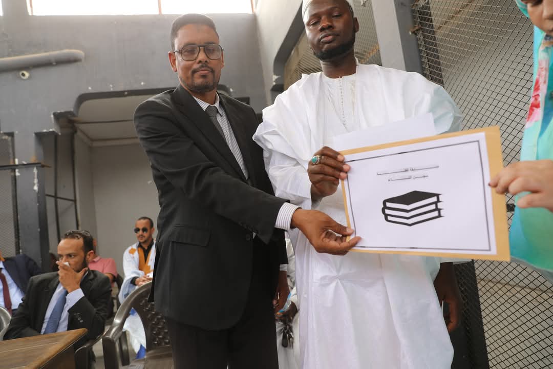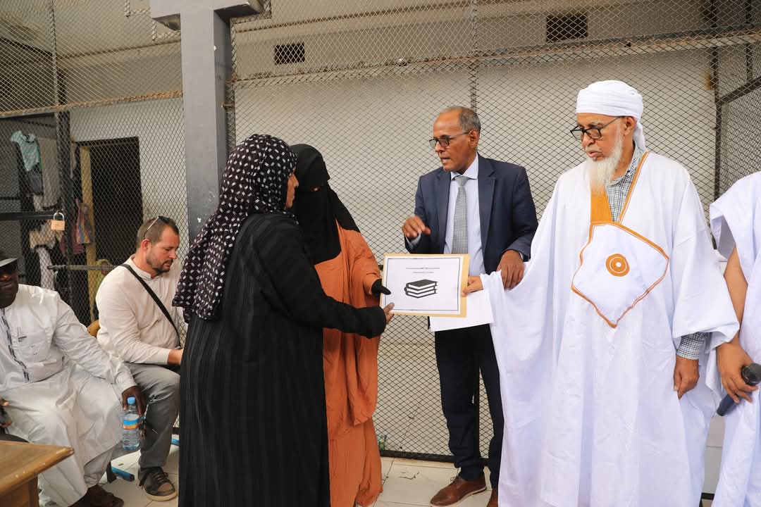 احتضن سجن النساء بمقاطعة عرفات بولاية انواكشوط الجنوبية اليوم الجمعة 30-05-2025 احتفالية نظمتها المديرية العامة للسجون وإعادة الإدماج لتكريم الفائزات من النزيلات في مسابقات أجريت لهن في القرآن الكريم والفقه ومحو الأمية.