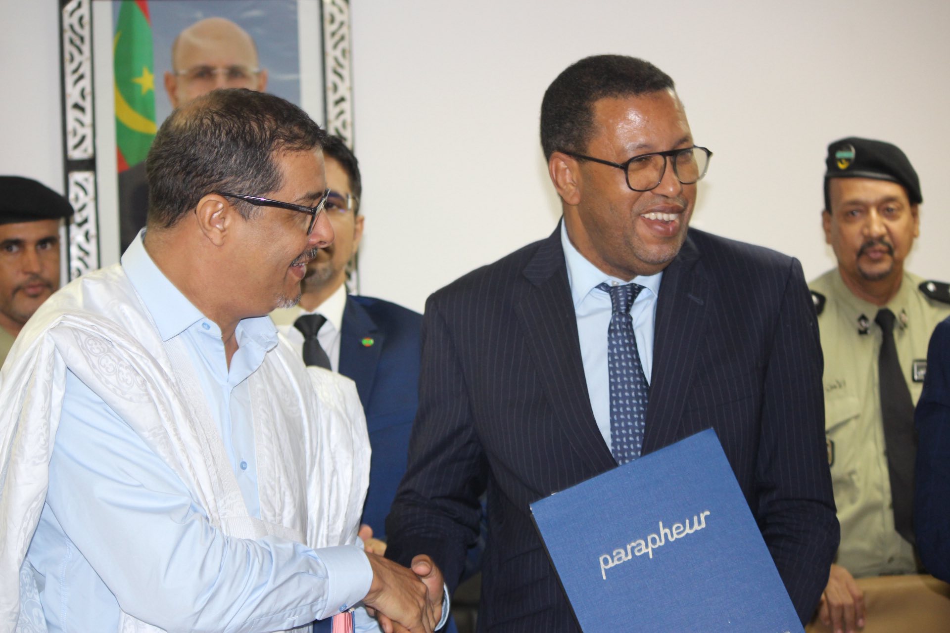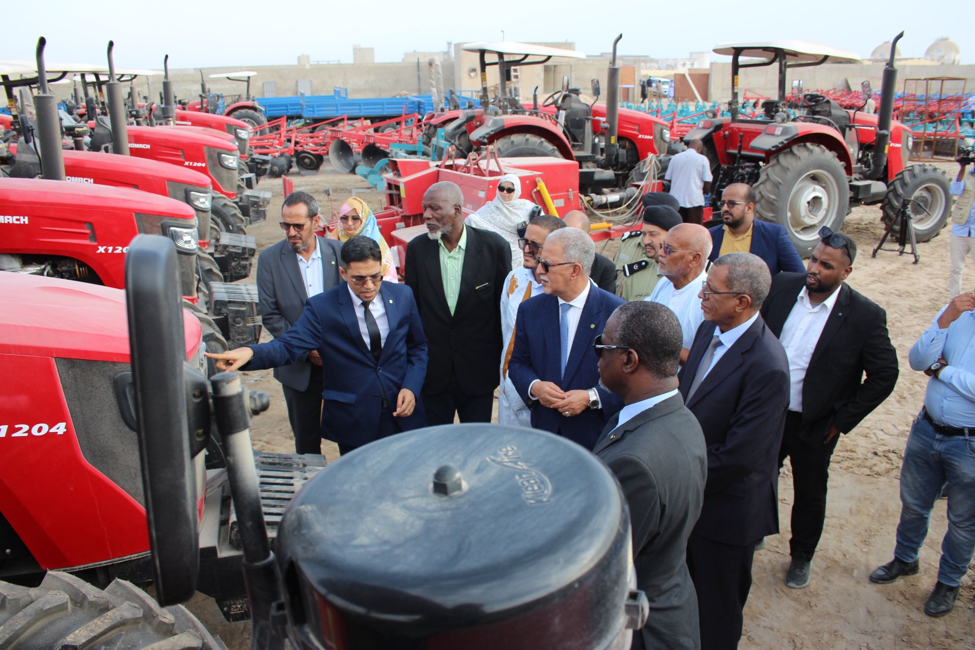 وبعد انتهاء مراسيم توقيع الاتفاقيات مع رؤساء المجالس الجهوية قام معالي الوزير رفقة الوفد المرافق بزيارة معاينة للآليات الزراعية بميناء نواكشوط المستقل واستمع من فنيي الوزارة إلى شروح حول طبيعة الآليات وملحقاتها