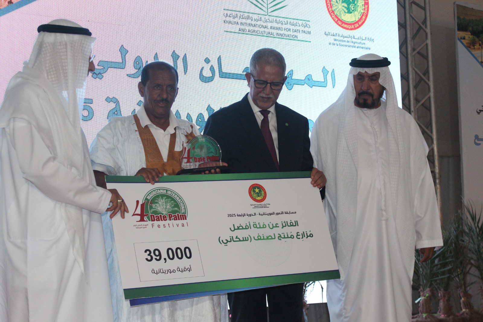 وحصد السيد دحمان محمد ماص بجائزة الفئة الثالثة كأفضل مزارع منتج لصنف " سكاني".