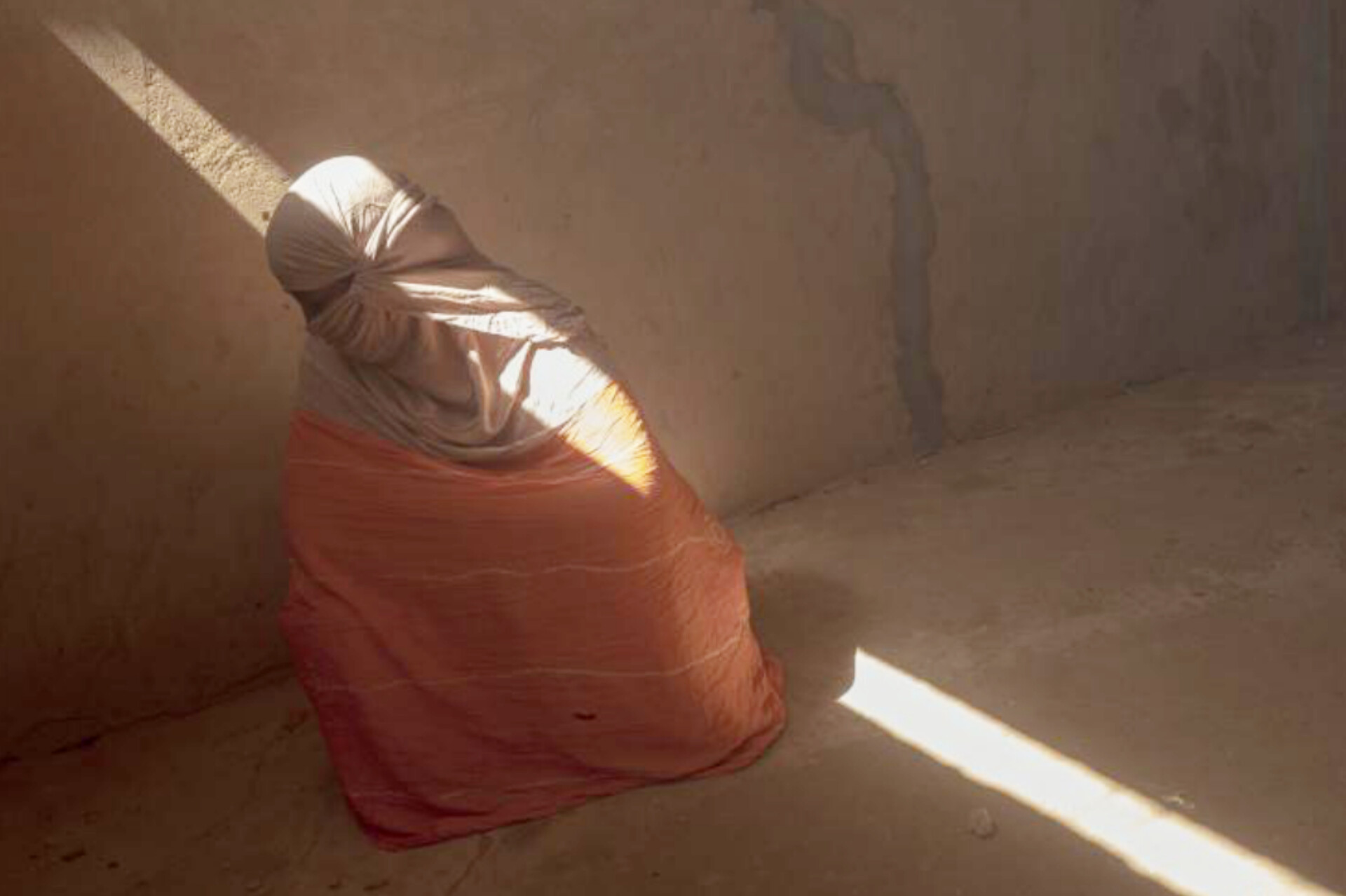 في هذا الوقت من اليوم، الشمس حارقة، فاطمة، أم من الطوارق ترتدي سترة زاهية الألوان، تحتضن ابنتها حديثة الولادة.