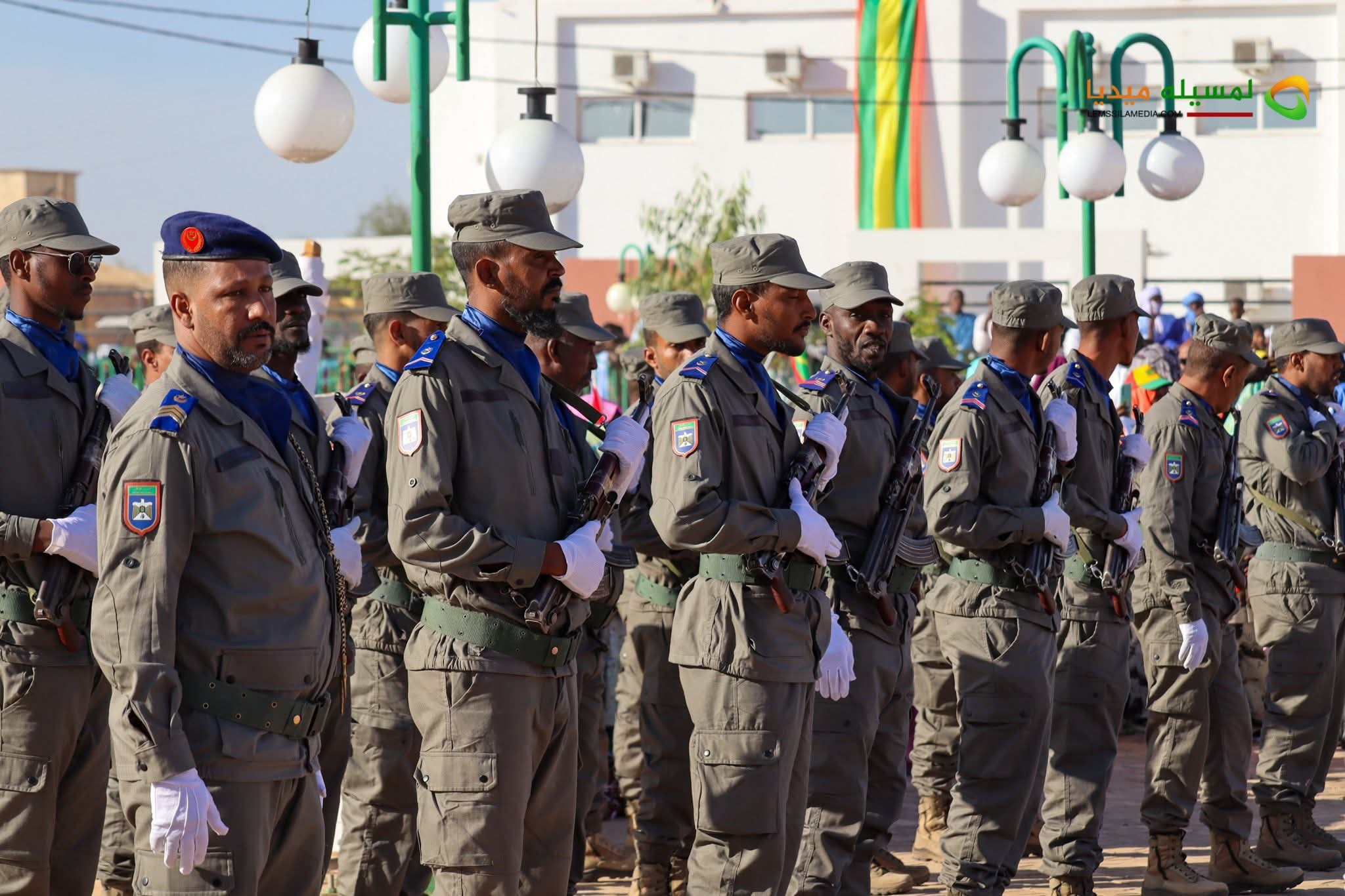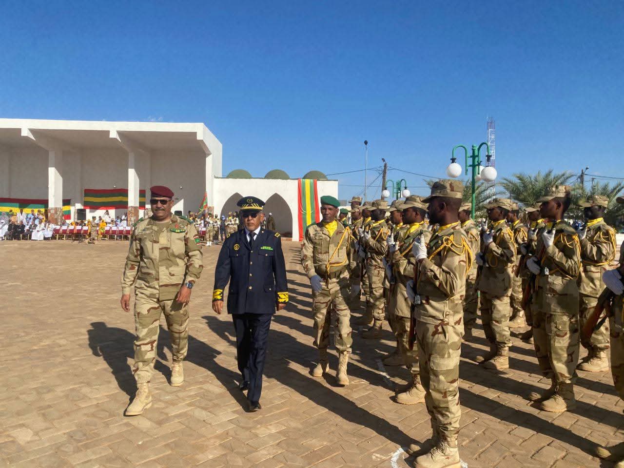 واستعرض الوالي، رفقة قائد المدرسة الوطنية لضباط الصف العاملين، العقيد محمد احمد الحاج محمد ووحدات من الجيش والدرك والحرس الوطني، قبل أن يصافح رؤساء المصالح الجهوية وقادة الأجهزة الأمنية على مستوى الولاية.