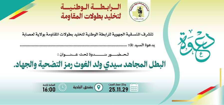 كيفه: ندوة بعنوان " البطل المجاهد سيدي ولد الغوث رمز للتضحية والجهاد" (دعوة)