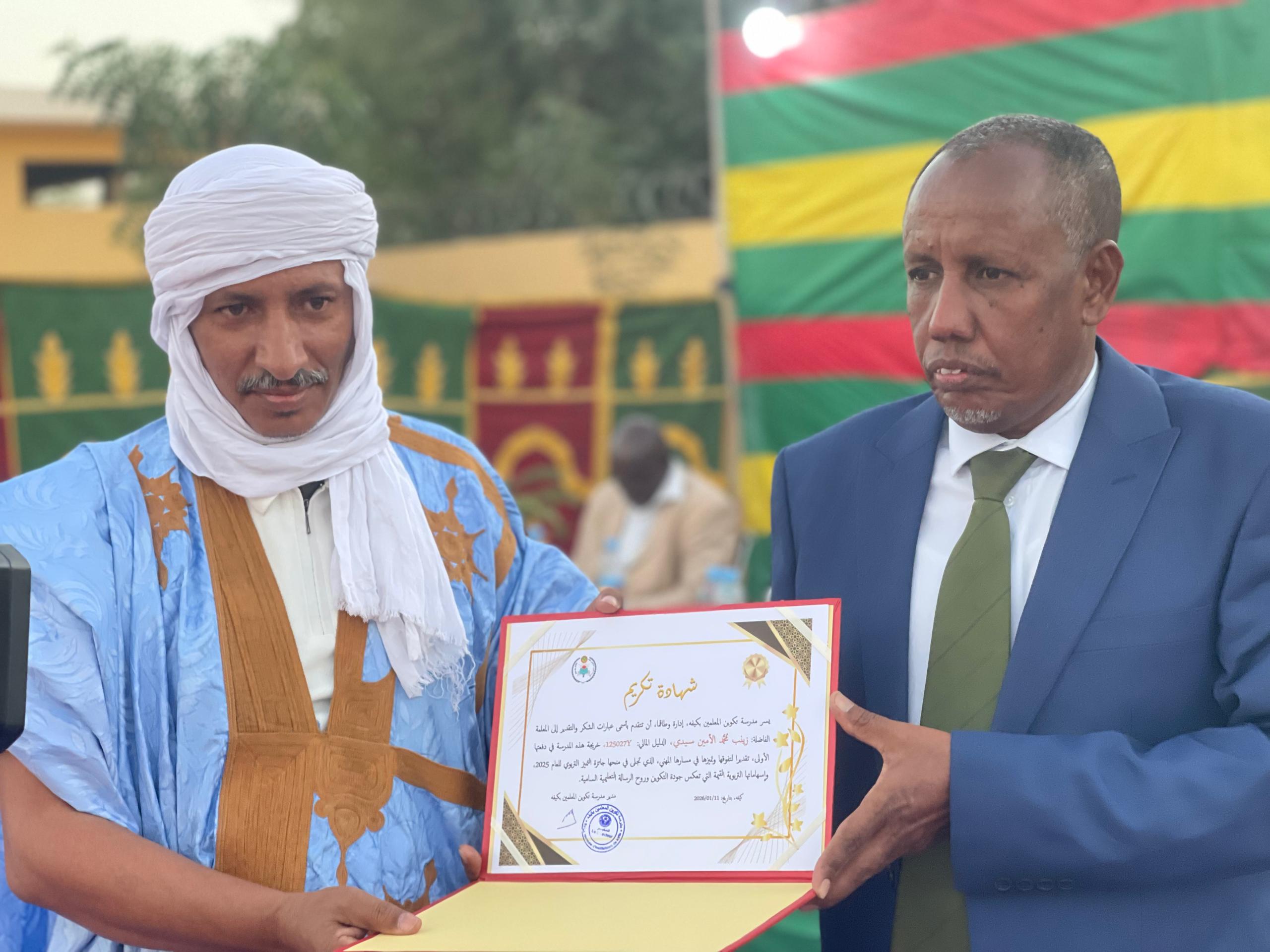 وأضاف المدير ان تنظيم هذا الحفل يأتي في إطار الجهود التي تبذلها حكومة معالي الوزير الأول المختار ولد أجاي ممثلة في وزارة التربية وإصلاح النظام التعليمي الهادفة إلى إعادة الاعتبار لمهنة التدريس، واستنهاض الضمير الوطني والوازع الديني، وبناء شخصية المدرس بوصفه حجر الزاوية في المنظومة التربوية حتى يتبوأ مكانته اللائقة: قدوة حسنة، ومرجعا للمجتمع، واثقا من نفسه ومؤمنا برسالته.