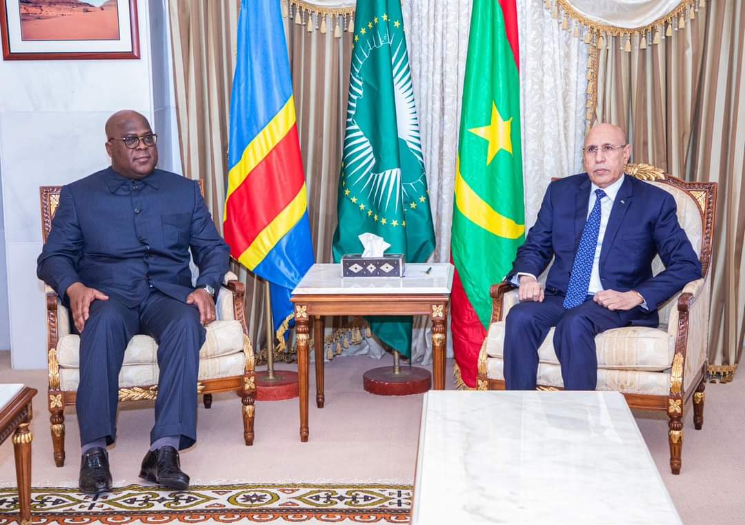 أجرى فخامة رئيس الجمهورية، رئيس الاتحاد الإفريقي السيد محمد ولد الشيخ الغزواني، مساء اليوم الأربعاء بالقصر الرئاسي، مباحثات على انفراد مع فخامة رئيس جمهورية الكونغو الديمقراطية السيد فيليكس تشيسكيدي، الذي يقوم حاليا بزيارة صداقة وعمل لبلادنا.