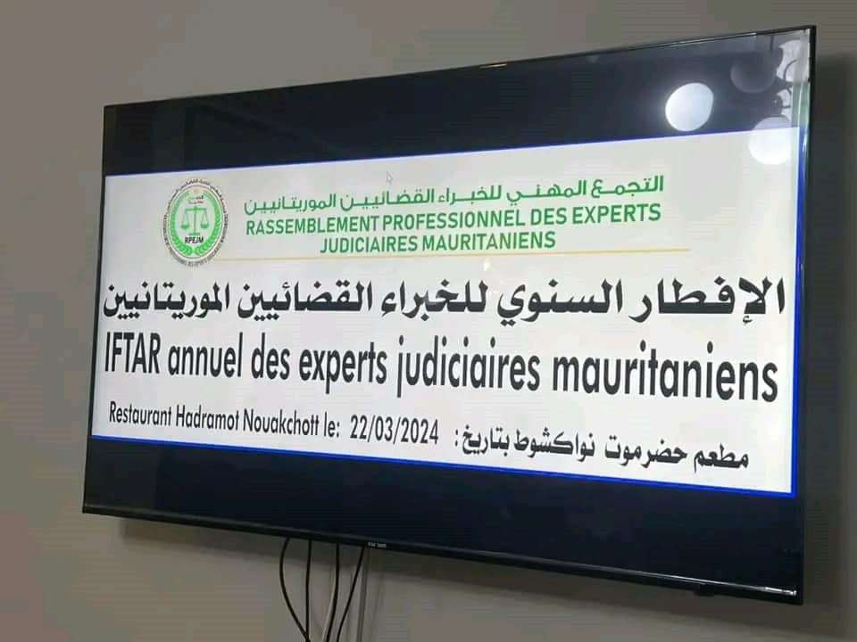 نظم التجمع المهني للخبراء القضائيين الموريتانيين إفطارهم السنوي للعام 2024، وحضر الإفطار الأمين العام لاتحاد عمال موريتانيا الوزير السابق الكوري ولد عبد المولى ونقيب الصحفيين الموريتانيين وأعضاء المكتب التنفيذي وعدد من الخبراء القضائيين الموريتانيين من ضمنهم العميد إبراهيم ولد الزبير والعميد إبراهيما سيديكى وكذلك العميد محمد ولد التومي.