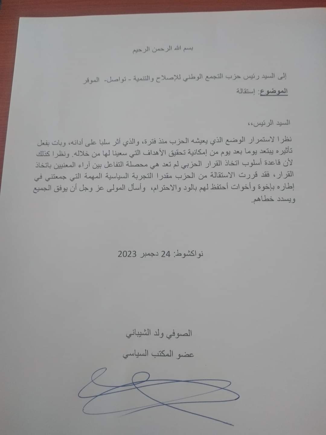 كما أعلنت رئاسة الجمهورية أنه بموجب مرسوم صادر اليوم الأربعاء، تم تعيين اللواء اعل زايد ولد أمبارك مفتشا عاما للقوات المسلحة وقوات الأمن.