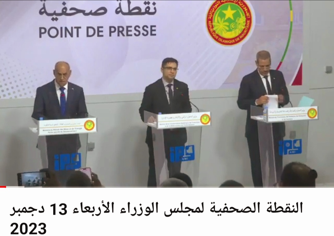 اجتمع مجلس الوزراء اليوم الأربعاء 13 ديسمبر 2023، تحت رئاسة صاحب الفخامة السيد محمد ولد الشيخ الغزواني، رئيس الجمهورية.