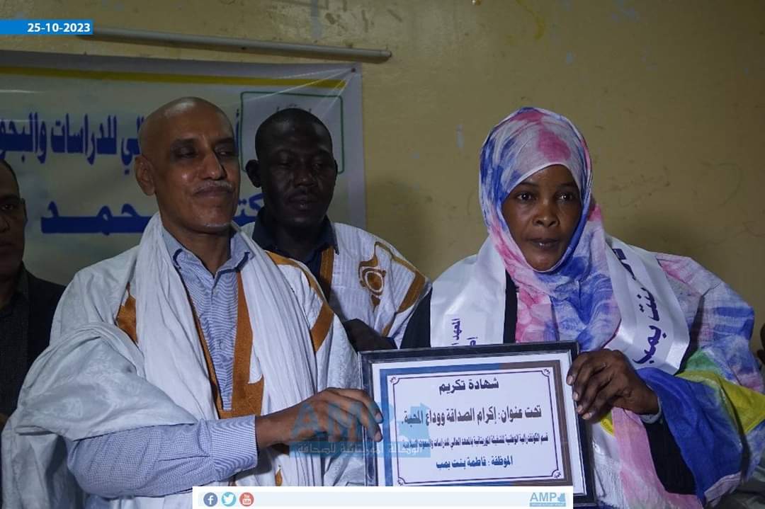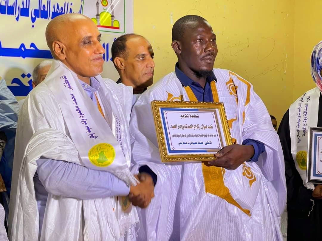 نظمت نقابات الأساتذة، والعمال، والطلاب بالمعهد العالي للدراسات والبحوث الإسلامية حفلا لتكريم الدكتور محمد محمود ولد سيدي يحي المدير السابق للمعهد..وشهد الحفل، الأول من نوعه في تاريخ المؤسسة العريقة، حضورا كبيرا لمشايخ العلم، والدكاترة، والعمال، والطلاب، غصت به القاعة الكبرى بالمعهد بإشراف من المدير الجديد الدكتور أحمد ولد اباه..وقد أكد ممثل النقابة الوطنية لأساتذة التعليم العالي الدكتور عبد الله عبد المالك في كلمة باسم رئيس النقابة تثمينهم للجهود ا