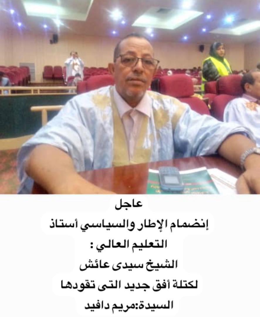 أعلن الأستاذ الجامعي والسياسي الشيخ ولد سيد عايش انضمامه الى كتلة أفق جديد التي تقودها الناسطة السياسية في حزب الإنصاف مريم دافييد.