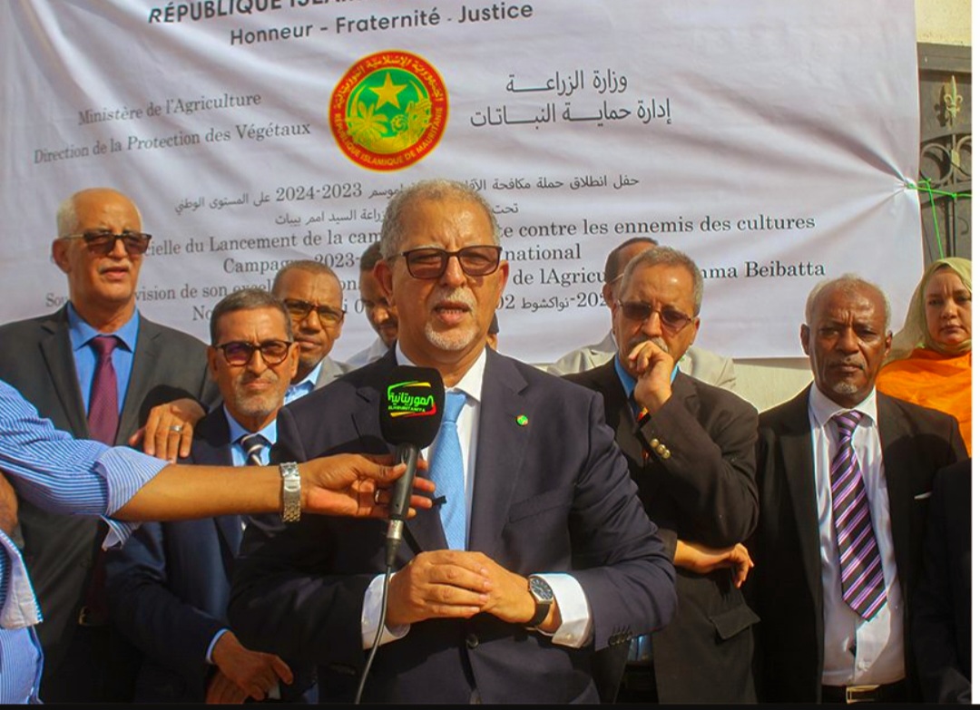أشرف معالي وزير الزراعة، السيد امم ولد بيباته، مساء اليوم بمباني مديرية حماية النباتات في نواكشوط، على إطلاق حملة مكافحة الآفات الزراعية لموسم 2023-2024.
