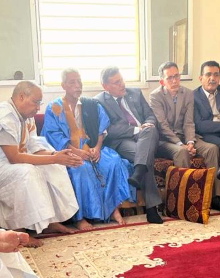 بعثت رئاسة الجمهورية صباح اليوم الجمعة 11/8/2023 وفدا برئاسة المستشار في الرئاسة محمد محمود ولد أمات ، صحبة والي انواكشوط الغربية امربيه ربو بنن عابدين،وحاكم مقاطعة تفرق زينة ابي محمد امبارك احميده الى منزل الوجيه الإجتماعي سيدى ولد بناهي بمقاطعة تفرق زينه لتعزيته في وفاة والدة اسرة اهل سيدى ولد بناهي ومن خلاله اسرتي اهل حم ختار واهل مولاي الزين وذالك باسم رئيس الجمهورية محمد ولد الشيخ الغزواني في وفاة المغفور لها بإذن الله غالية منت حم ختار داعي