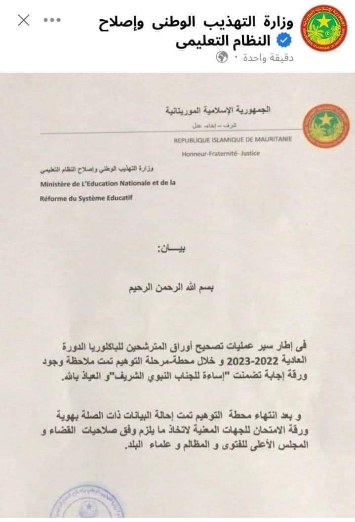 و على الراغبين في الاستفادة من هذه الدروس المجانية الالتحاق بالمدرسة صباح الإثنين مصحوبين بكشوف النتائج للدورة الأولى،و ذلك من اجل التاكد ان المترشح موريتاني الجنسية و مترشح من أحد المراكز في ولاية لعصابه