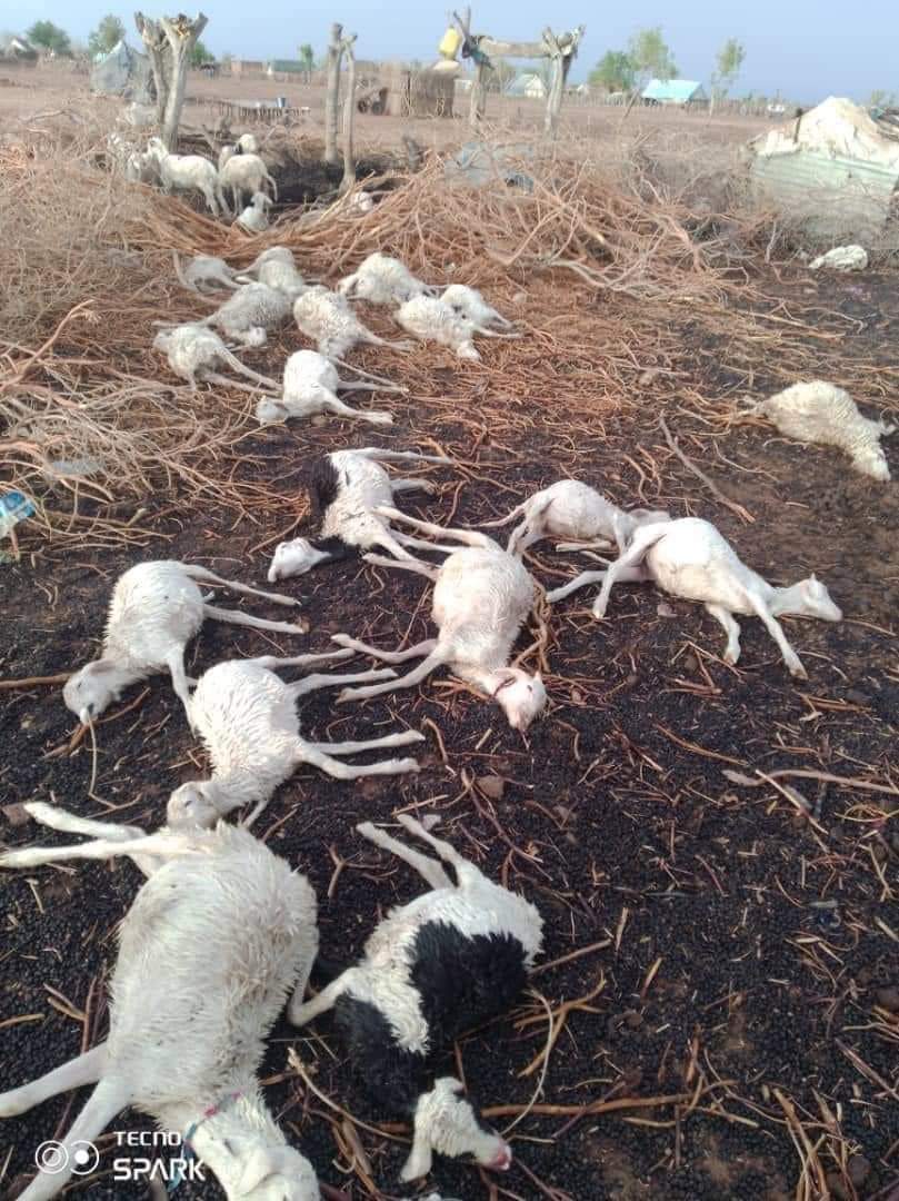 أدت صاعقة رعدية مساء أمس الى نفوق أعداد كبيرة من الماشية في قرية أكادير ببلدية لمحيجرات بمقاطعة اطويل بولاية الحوض الغربي، حسب ما تداوله ناشطون على وسائل التواصل الإجتماعي.