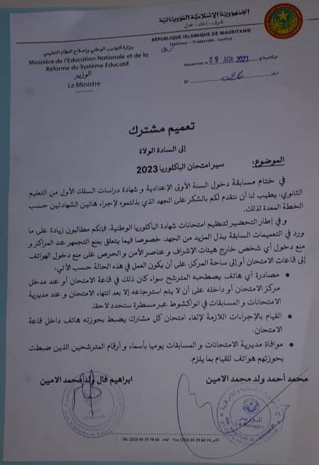 أصدرت وزارة التهذيب الوطني و إصلاح النظام التعليمي تعميما مشتركا إلى جميع الولاة بخصوص تنظيم سير امتحان الباكلوريا.